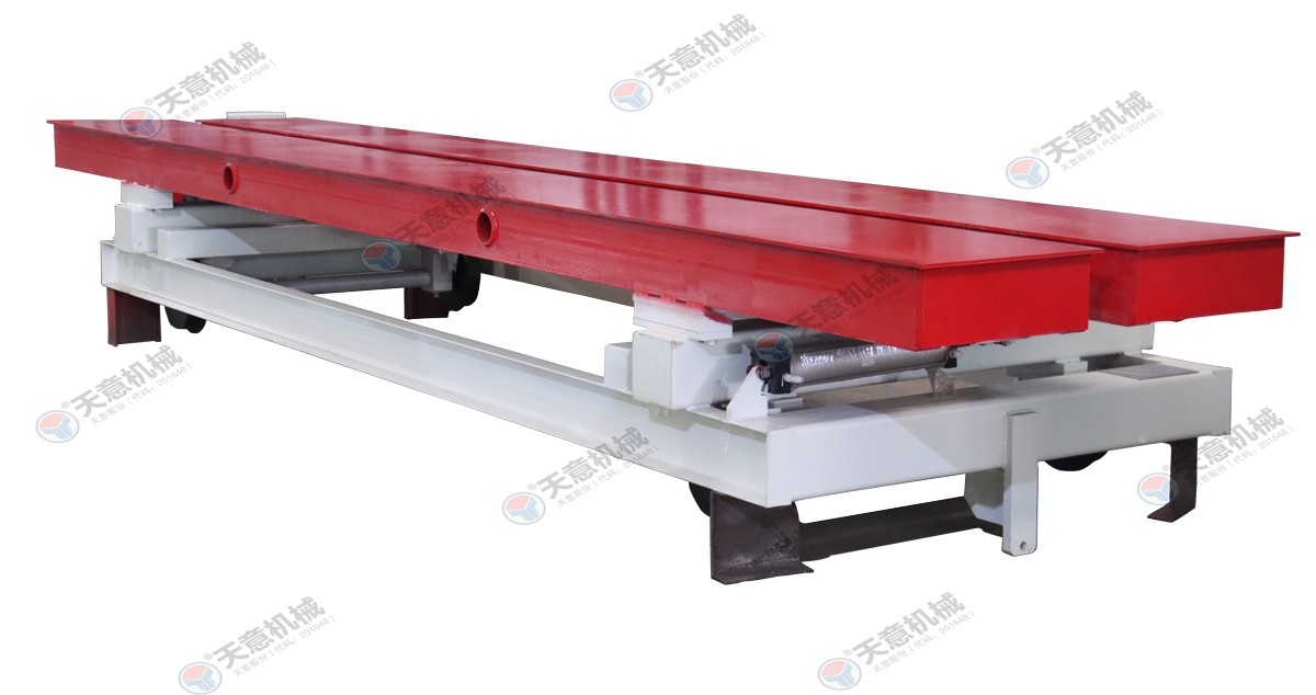 切割小車用于承載坯體為切割提供動力;切割工段空翻脫模機將??蚍D90°,放在第一輛切割小車支座上進行脫模,脫模后的模框與清理后的側模板進行合模,合膜后的空??虮坏踹\至模具回程軌道上進行涂油處理,等待下一...
