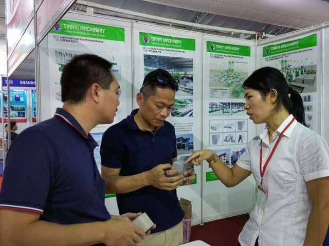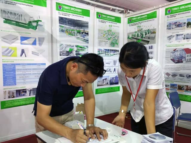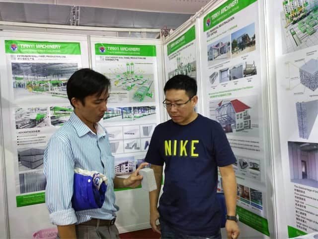 越南是亞洲經(jīng)濟(jì)發(fā)展速度的國家之一。近年來,越南正加大對基礎(chǔ)設(shè)施建設(shè)和主要城市居民住宅的改造力度,綠色建筑建材裝備缺口巨大,為適應(yīng)市場需求,天意機(jī)械攜綠色建材設(shè)備參展了此次展會。展會期間,外貿(mào)銷售部李經(jīng)理,認(rèn)真對待每位來訪的客戶,詳細(xì)向其介紹天意機(jī)械專利產(chǎn)品輕質(zhì)墻板生產(chǎn)線,復(fù)合墻板生產(chǎn)線,保溫裝飾一體化板生產(chǎn)線等產(chǎn)品的優(yōu)勢,以及設(shè)備在東南亞地區(qū)建筑建材市場的影響,展會現(xiàn)場就有多數(shù)客戶,初步簽訂了輕質(zhì)墻板生產(chǎn)線、復(fù)合墻板生產(chǎn)線加工生產(chǎn)訂單。