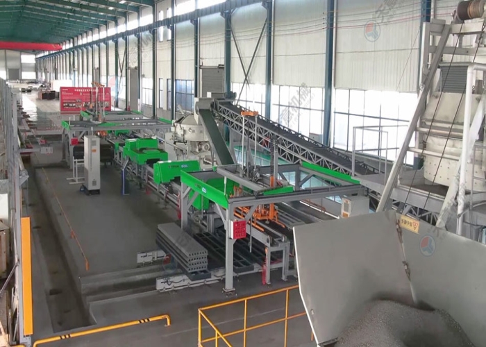擠壓墻板生產(chǎn)線結(jié)構(gòu)緊湊,自動化程度高,設備主機固定,墻板成型時物料受擠壓和振動同時作用,連續(xù)自動擠壓振搗成型,保證墻板具有良好的密實性和外形尺寸,成型后進行初凝養(yǎng)護。板坯移動方便,場地使用靈活、利用效率高。成型工段推料擠壓螺旋變頻調(diào)速,由中央控制器調(diào)整控制灰渣板成型的密實程度,實現(xiàn)灰渣板的連續(xù)自動流水線生產(chǎn)。由于采用低水灰比的干硬性混合料擠壓成型,可得到強度和密實度較高的空心墻板。自動化連續(xù)生產(chǎn),效率高,質(zhì)量一致性高,保障了墻板品質(zhì)。廣泛用于框架結(jié)構(gòu)和鋼結(jié)構(gòu)建筑物。